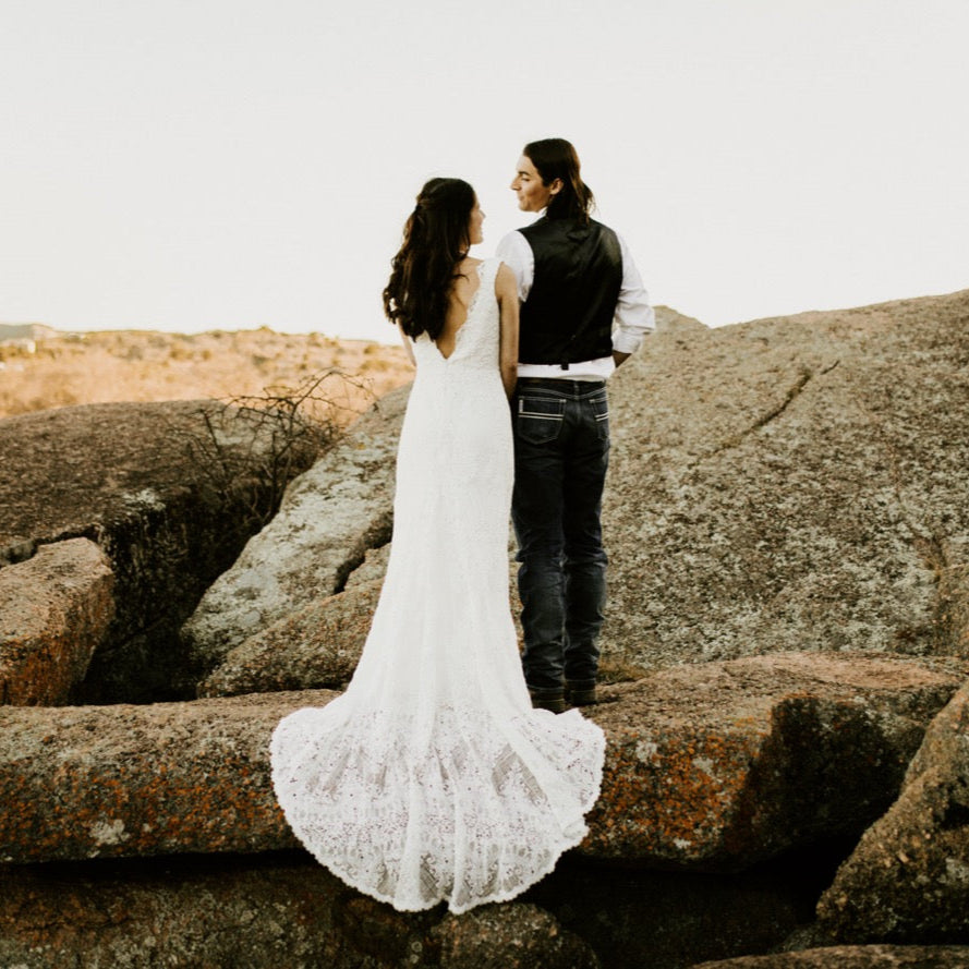 Beloved by brides around the world, Queen Melissa is the most pinned wedding dress of all time—a true internet icon that continues to steal hearts with every lace-draped detail. Queen Melissa is timeless and romantic, with just the right amount of drama. From the moment you slip her on, you’ll feel the signature fit of lightly structured crochet lace—designed to flatter and hug in all the right places. She’s for the bride who wants vintage charm without sacrificing modern ease.